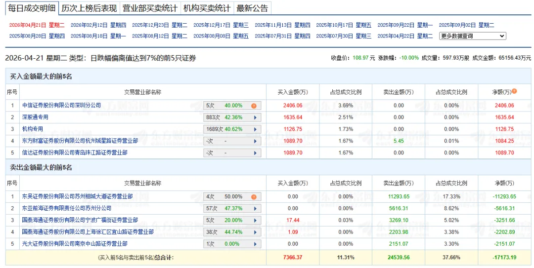 “易中天源”这类业绩最先兑现的龙头,都是机构资金大比例抱团,即使有利空或其他意外事件打击,股价波动性相对小很多。相反,类似液冷这种“中期肯定、业绩兑现晚”的行业,机构资金进驻相对少,抱团抱得不够紧,同时还有“情绪资金(游资)”参与,这种情况下,大盘行情稍有震荡(类似3月份),或行业个股稍有不佳的消息,股价K线相对光模块龙头的波动就更大。液冷龙头今天龙虎榜,一目了然。