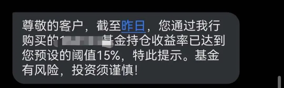 今天早上,银行弹出一条通知:达到止盈点。