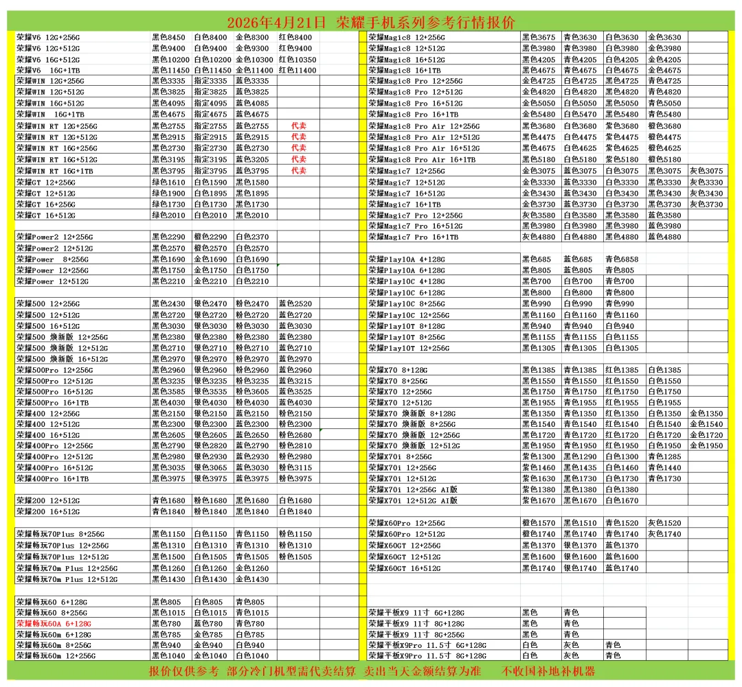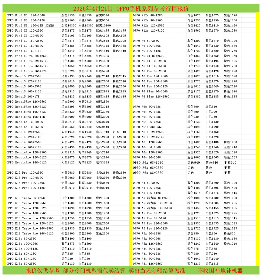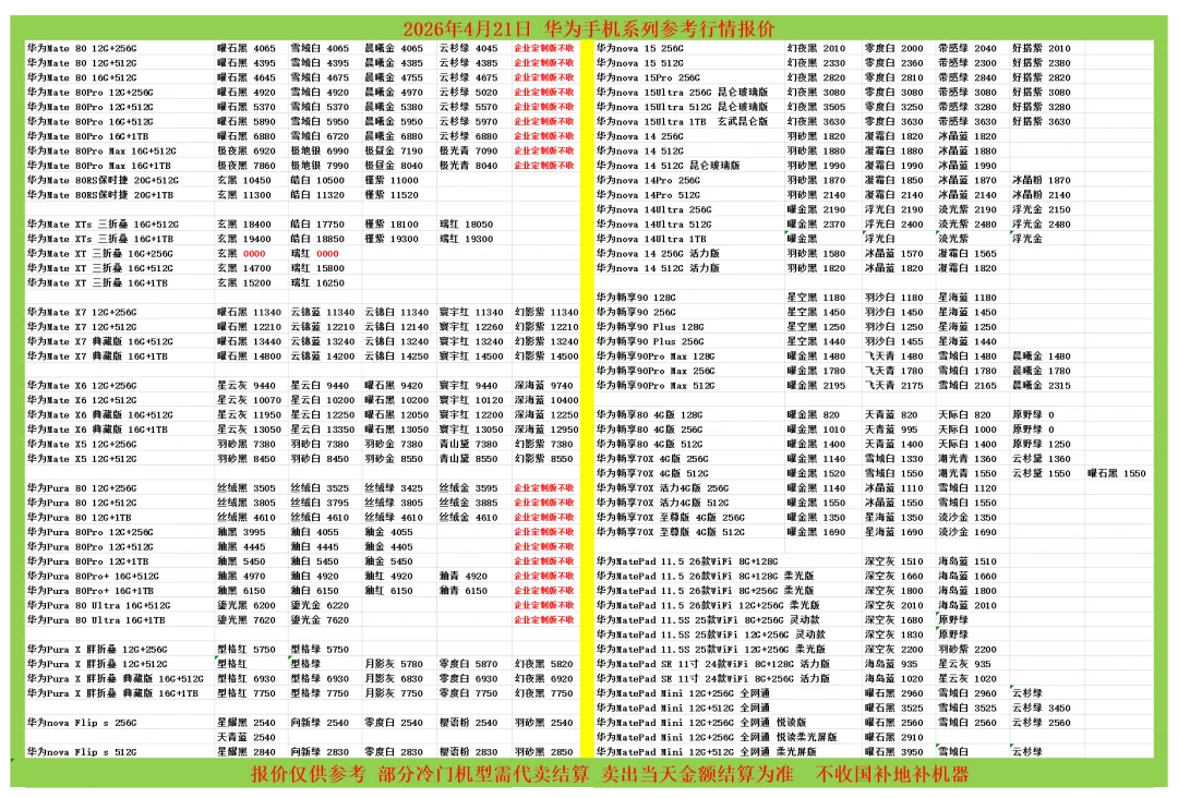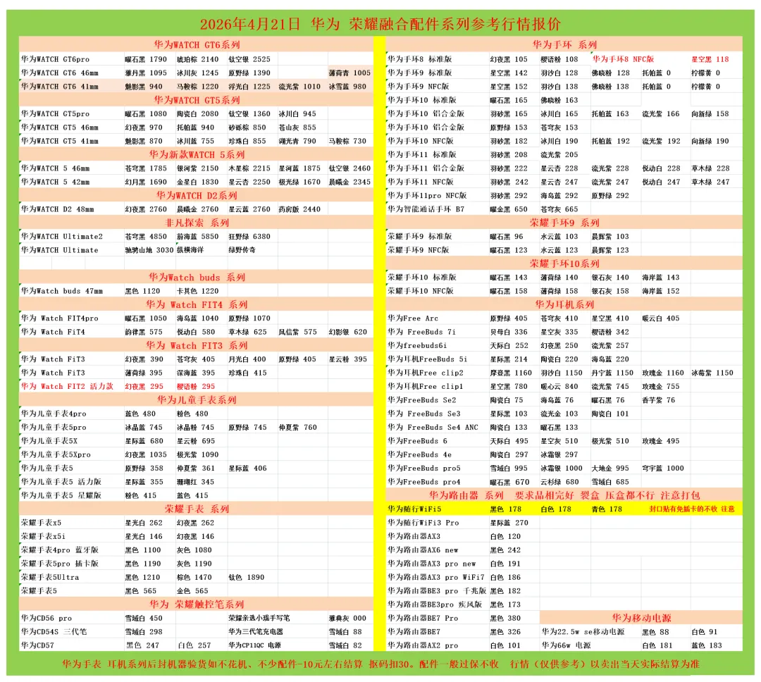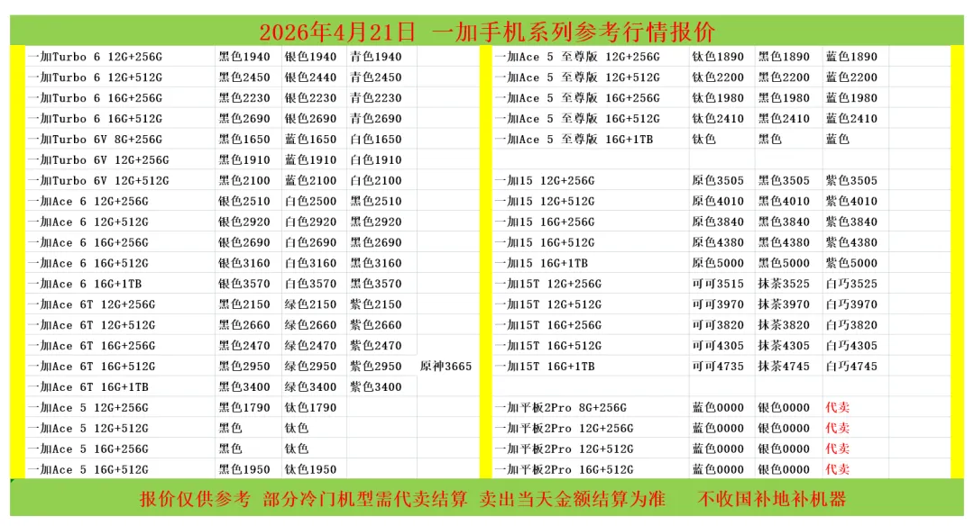 (1)二级市场为自由交易市场,价格实时波动,可能每个小时的卖价都不一样,此报价为华强北市场收货参考行情,实际结算价见公众号:鸟哥撸货数码结算价。