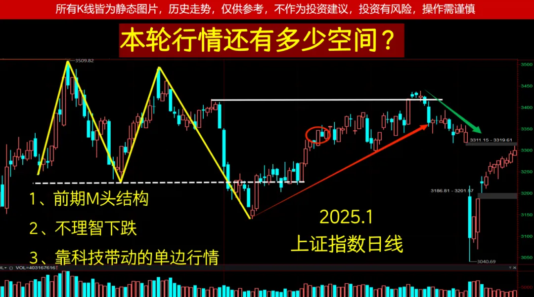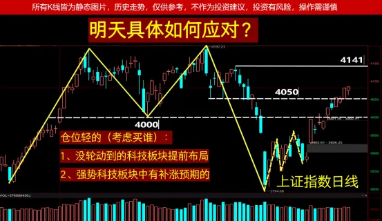 唯一需要警惕的是:板块轮动突然“戛然而止”,伴随着出现我们昨天讲的放量滞涨,或者放量冲高长上影,就是日线调整的信号。在此之前,大家不用太担忧。