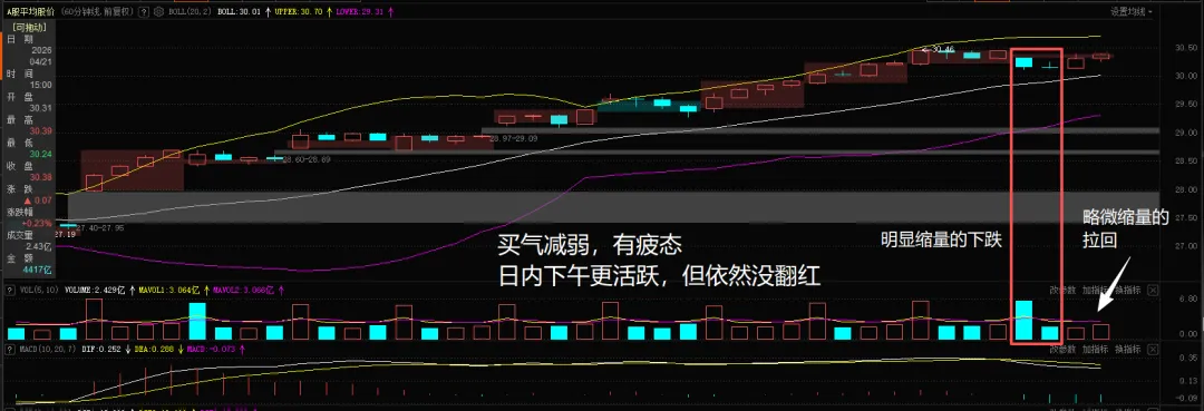 平均股价指数-0.2%,成交额2.43万亿(环比缩量1800亿)。低开快速下杀后,振荡修复。从60分钟看(如下图,来源:choice),外围无大利空利好的情况下,市场走的却是下跌修复,同时早盘缩量下跌,下午日内反弹带量,到最终依然收阴。代表买气减弱,指数上攻态势有疲态。鱼尾巴行情,反弹尾声的迹象越来越多了。