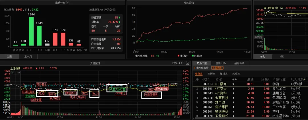 另外防御方向,公用事业、电力、核电、煤炭普涨,化工板块标的近期也高度分化,部分标的快速补涨。代表主力资金也在为美伊停火到期(4月22日)而带来的不确定性在做埋伏。