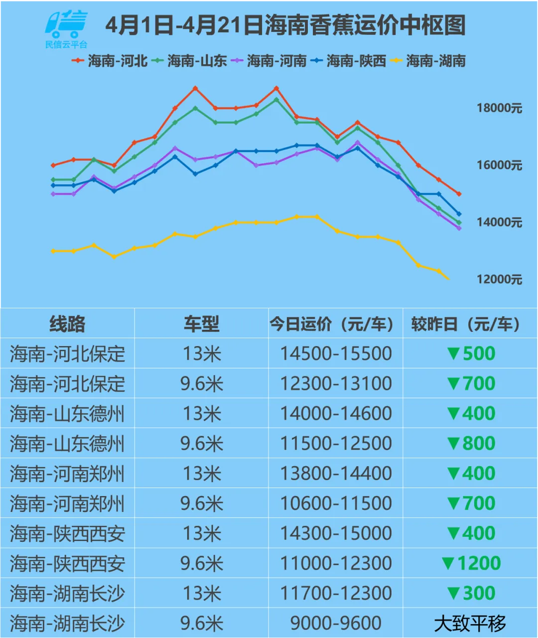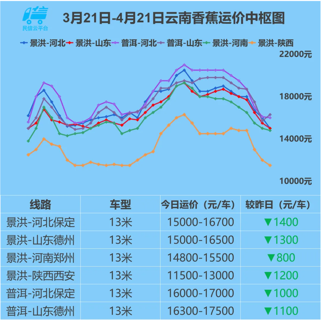 4月21日 全国主流运价行情