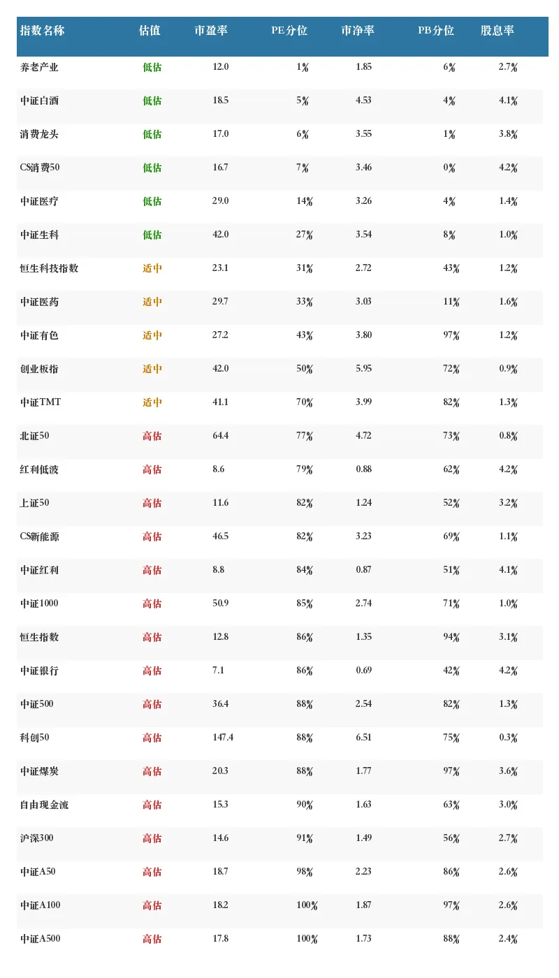 二、核心指数估值