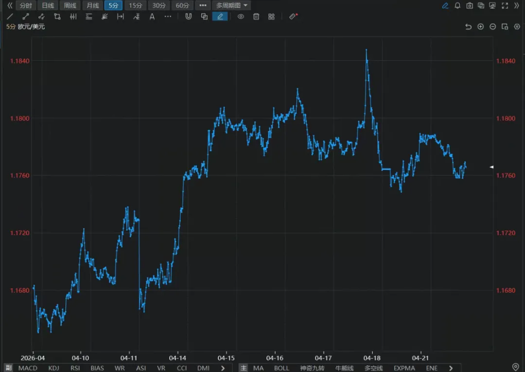 5分钟方向:上涨趋势中的回调阶段 ✅(从1.1840回调至1.1760附近)