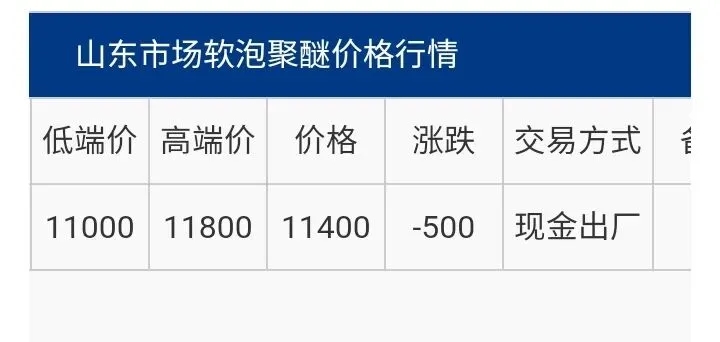 山东软泡聚醚评估商谈区间11000-11800元/吨现汇出厂,具体商谈。