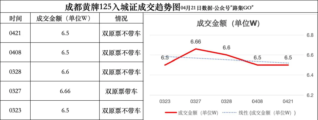 【成都摩托车黄牌125入城证成交趋势图】