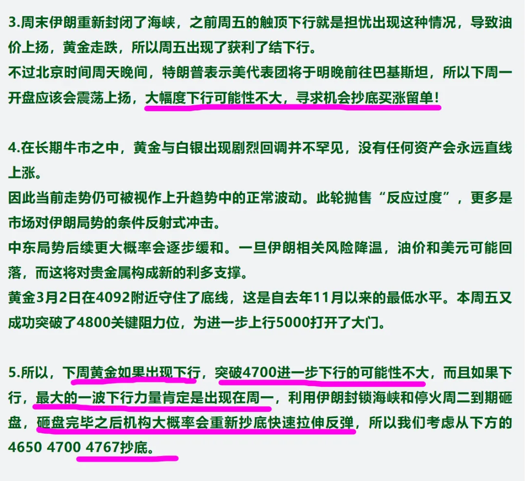 2.如果周二周三谈判没有进展,停火协议没有延期,战争重启,首先看跌4700,然后是4650,最低4600触底。
