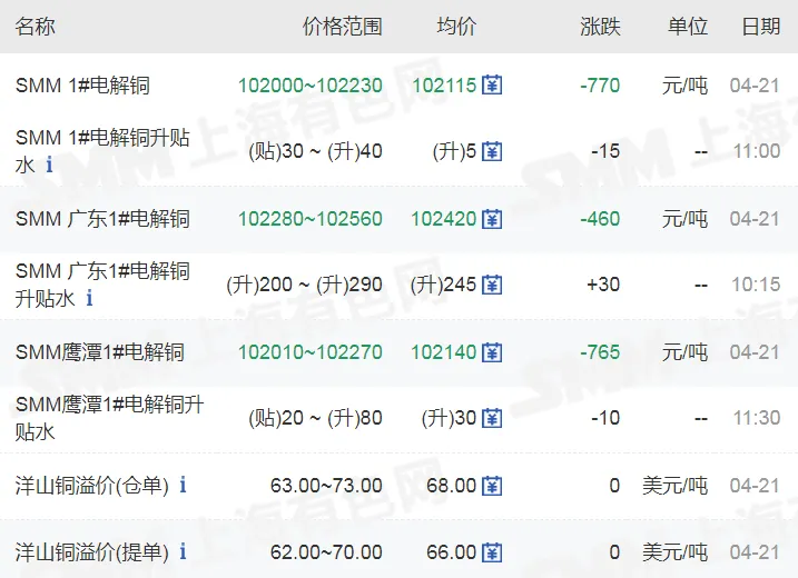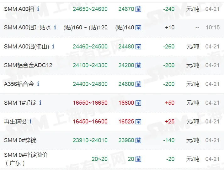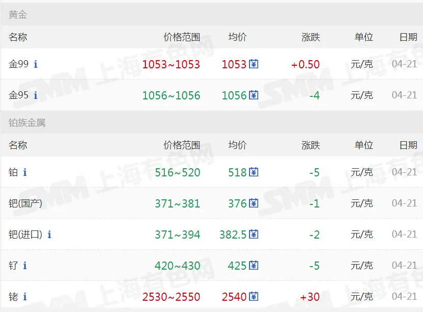 >20260421金银铜铝价格行情