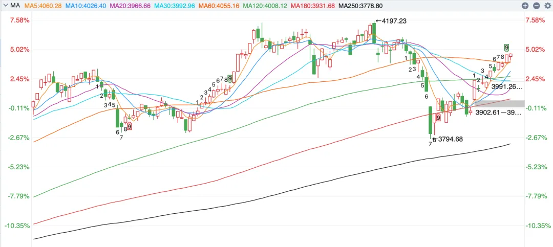现在强势特征依然处于确立状态,只不过4100点这个位置的压力还是比较明显的。