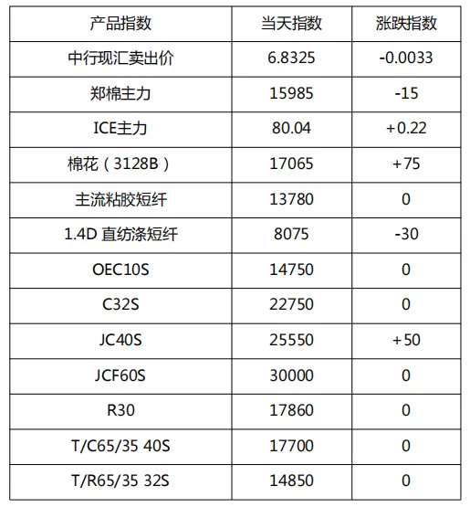 今日郑棉高位整理,棉花现货交投依旧冷清,基差整体多稳,一口价与点价相差不大。今日美期棉窄幅震荡、郑棉窄幅震荡,内外价差震荡。现货方面,整体比较一般,人民币货源涨价后成交走淡,美金点价增多,新疆口岸哈棉、土耳其棉、巴基斯坦棉成交尚可,人民币基差平稳,美金基差平稳。