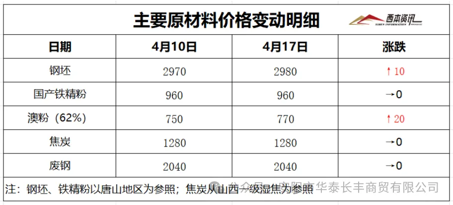 (1)上周国内建筑钢材行情小幅上涨,截至4月17日,钢材指数报在3450,周环比上涨20。