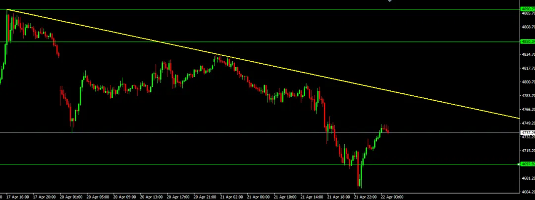 2、短期压力位4800附近、4850附近。