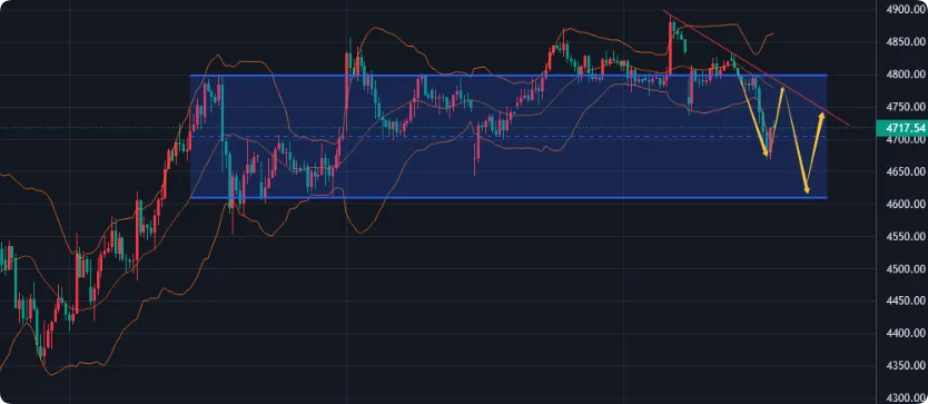 下方回落至4650–4670轻仓试多,防守4630,目标4690–4710-4730。