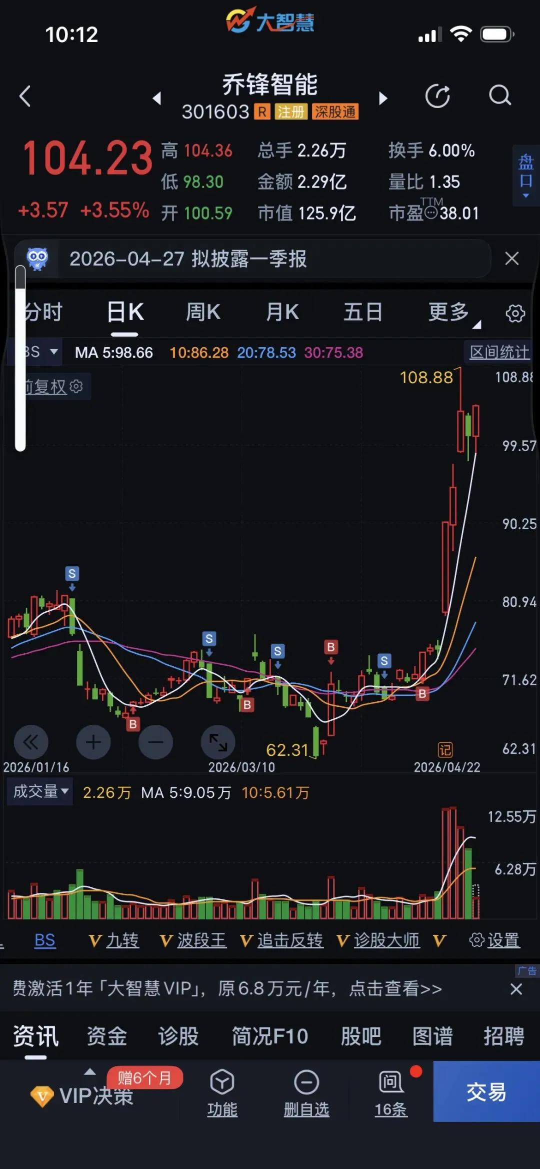 基于以上原因我于4月21日买入4/16仓,重仓买入,成本价99.7元,今天99.52元又入仓2/16,一共6/16仓位。