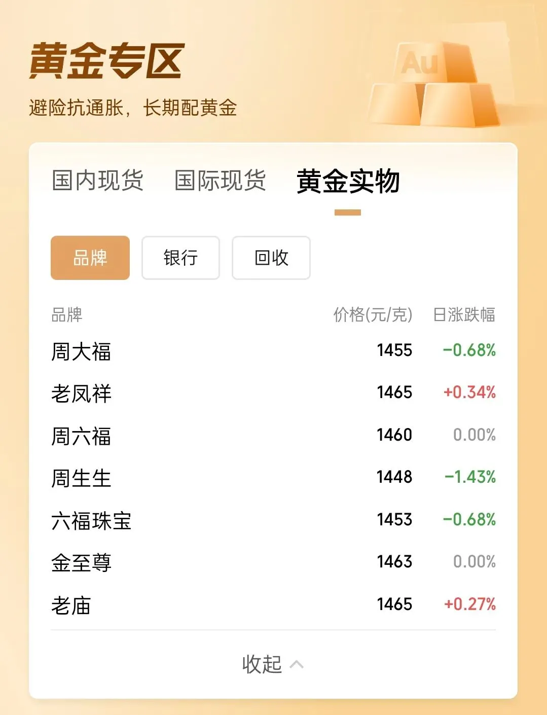 三、国内各大品牌黄金零售行情