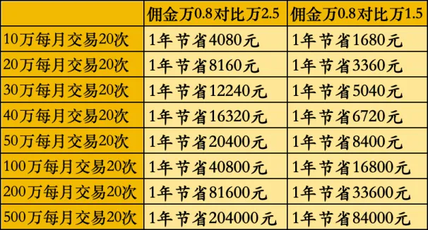 可别看佣金率的小小的差别,只要交易频率略高一点,一年累积下来都是不小的数目。
