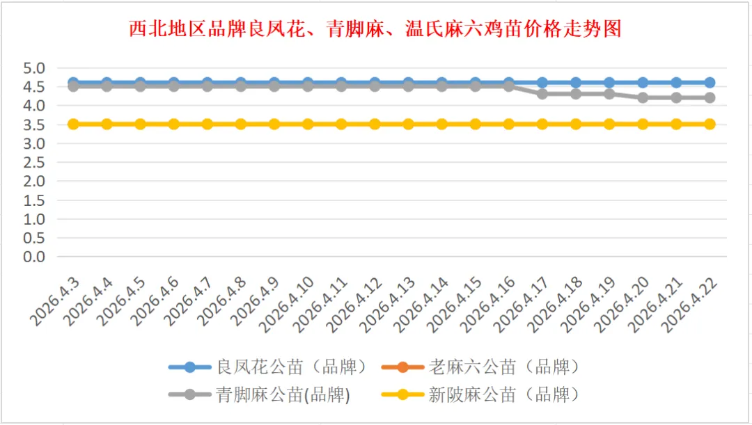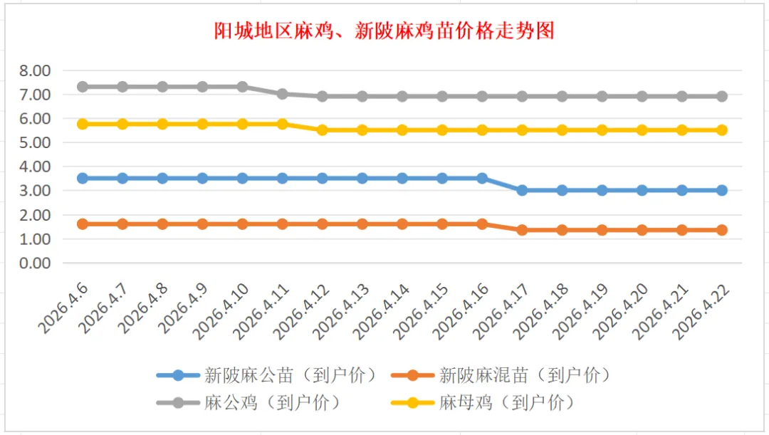 品牌新陂麻:价格稳定,到户价公苗4.50元/羽,稳。
