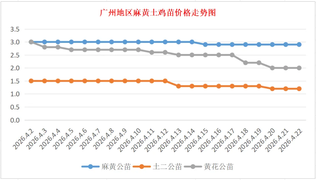 普通青脚麻公苗(多品种快大型):价格稳定,到户价3.30元/羽,稳。