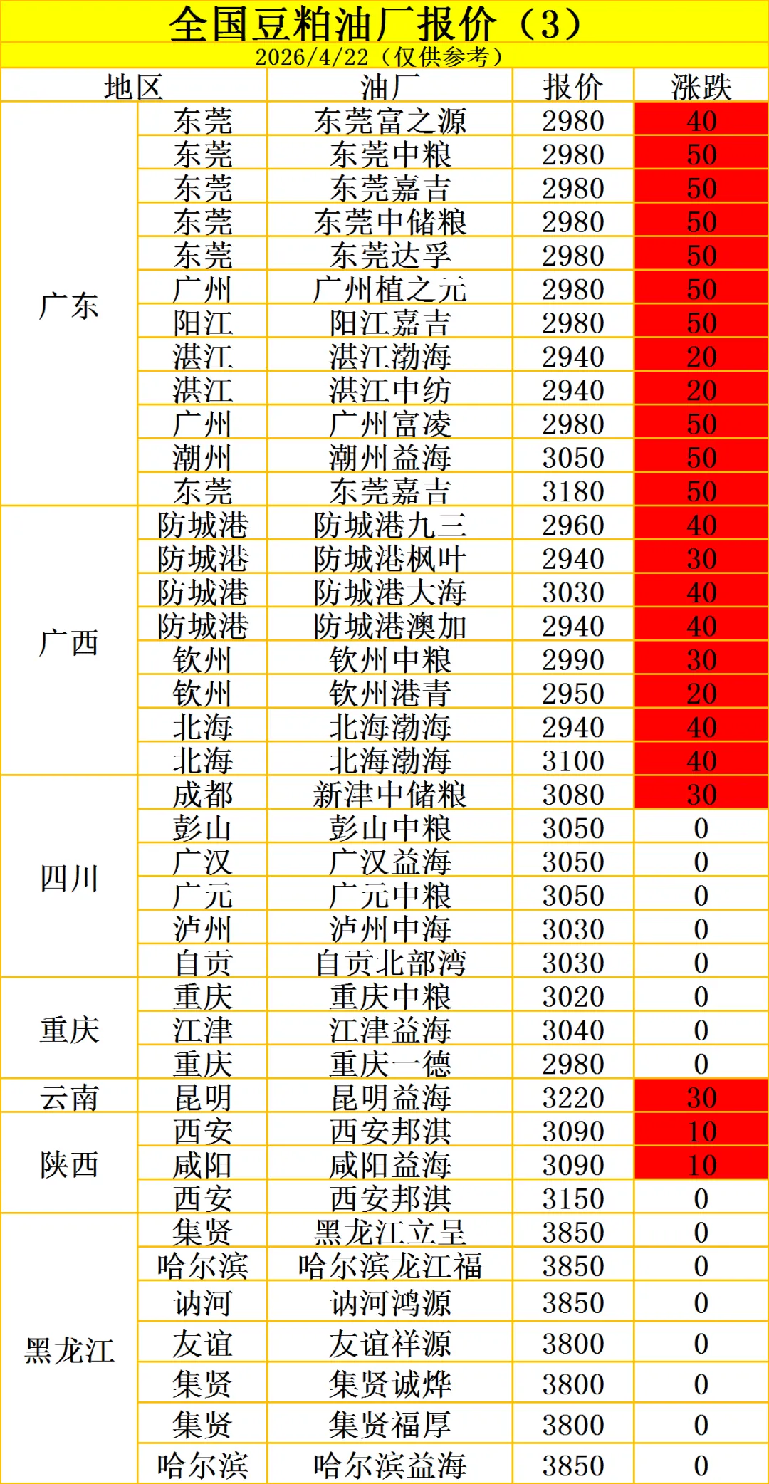 4月22日,国内豆粕现货价格延续弱势震荡格局。据农业农村部监测,4月第3周全国豆粕平均价格3.37元/公斤,环比下跌1.2%,同比下跌6.6%。