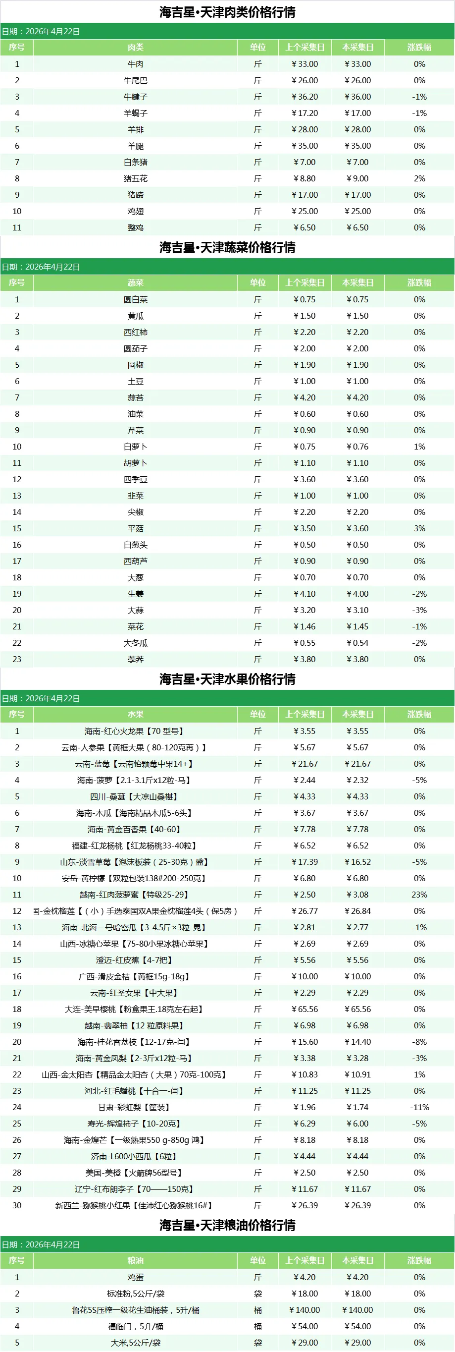 行情丨海吉星·天津2026年4月22日价格行情