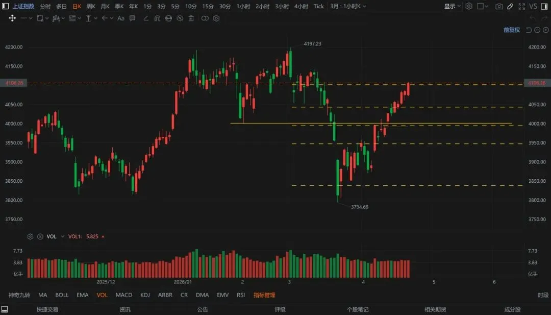 上证指数,最近涨得猛,到4100了,最好不要追,等个回调再说