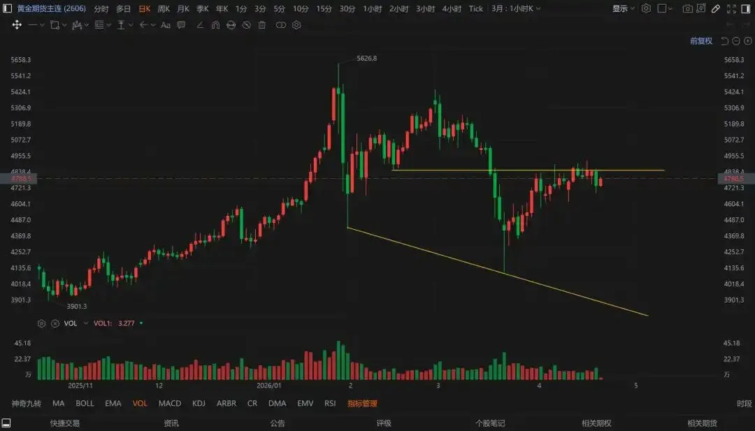 黄金到压力了,等个回调找机会加仓
