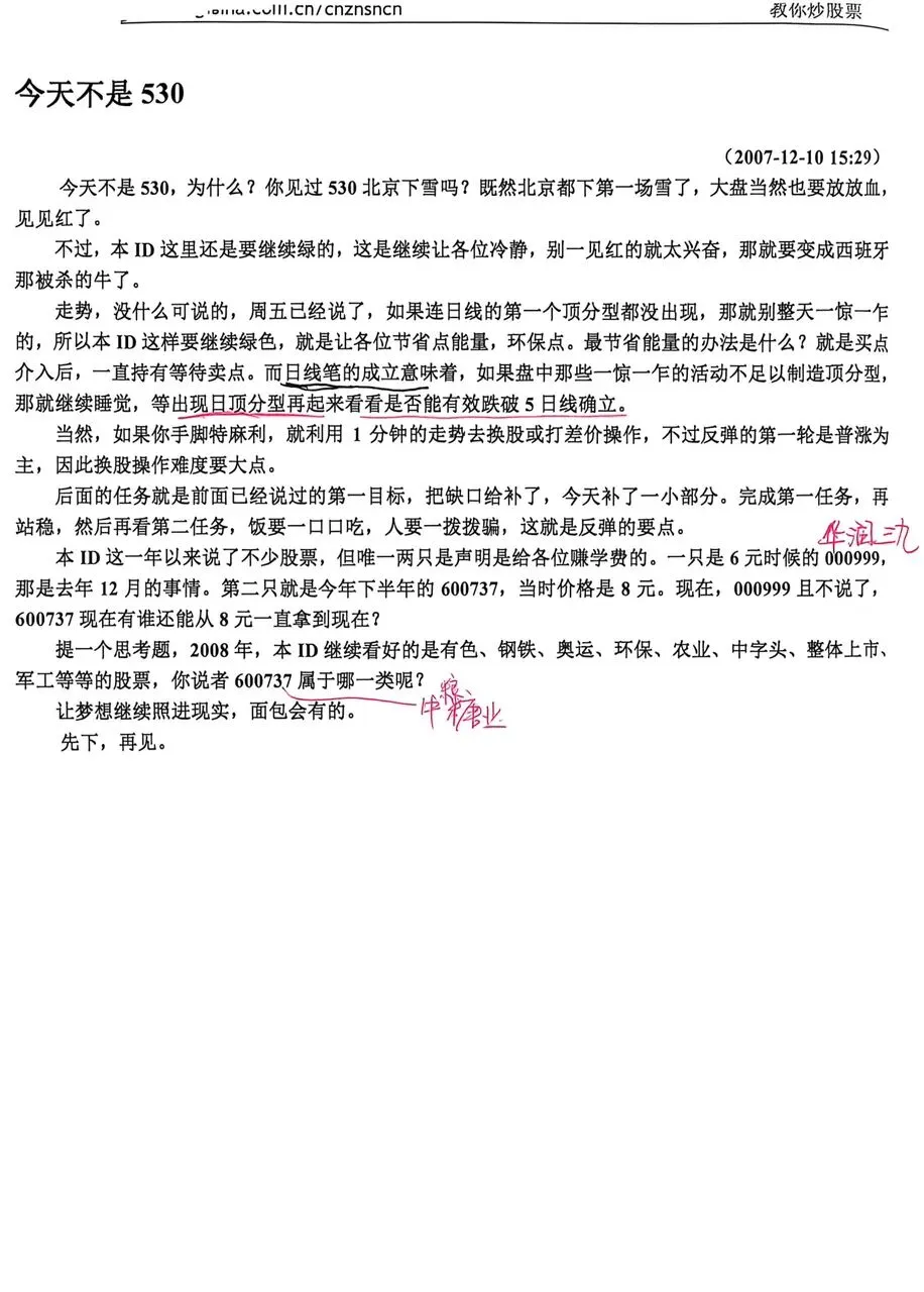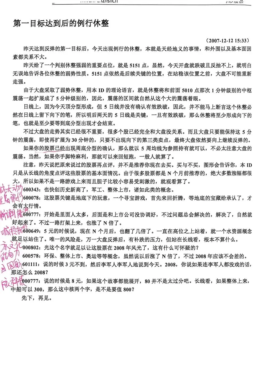 近几天天气忽冷忽热,把人都整感冒了。吃过感冒药昏昏沉沉的,脑子都不灵光了。上几篇原文学习一下,记录的是2007年10月份高位下跌下来后的一个反弹走势。