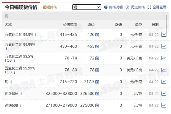 铌系市场今日延续一贯的平稳特性,依旧是有色板块中走势最稳定的品种,全品类报价与上一交易日完全一致,无任何涨跌波动。上海有色网数据显示,五氧化二铌各品位报价平稳,铌锭均价 717.5 元 / 千克,60A 铌铁均价 326500 元 / 吨,60B 铌铁均价 275000 元 / 吨,均保持不变。