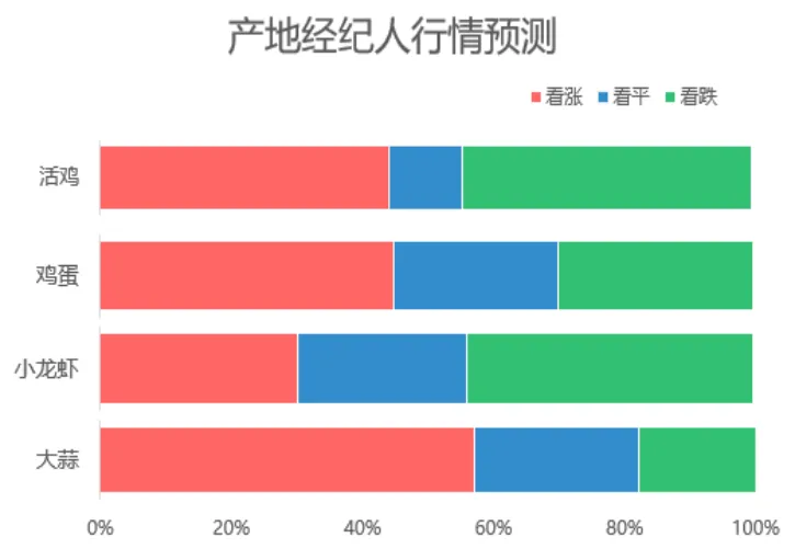 据产地经纪人对热门品类后市行情预测:活鸡看涨和看跌的比重均为44.4%,后市行情如何暂不明朗;鸡蛋和大蒜看涨、看稳和看跌各占一定的比重,但看涨的比重要多一些;小龙虾后市价格大概率仍会下跌,看跌的比重为43.9%,稍高于看涨和看稳。湖南惠农科技有限公司