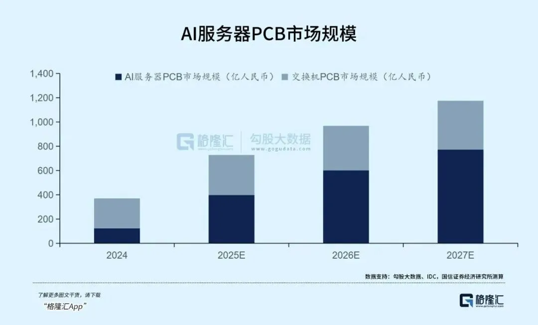 需求端,AI算力基建已成为PCB需求的核心驱动力,不仅直接带动AI服务器、高速交换机、光模块等高端PCB需求激增,还间接推动了通用服务器领域的温和增长。
