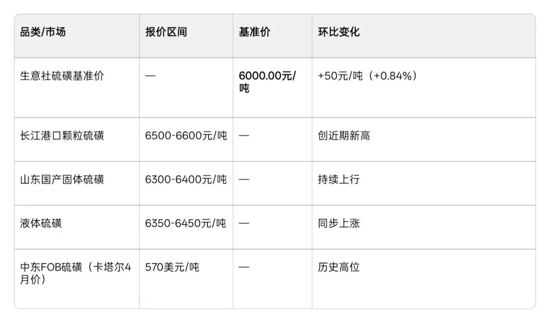 硫磺最新行情速览!强势上涨