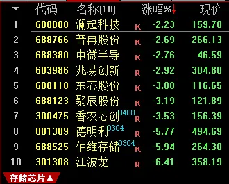 (2)存储芯片组合:德明利、佰维存储、江波龙、聚辰股份、普冉股份、澜起科技、香农芯创、兆易创新、中微半导、东芯股份,2026.02.06调入。