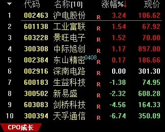 (3)CPO成长组合:中际旭创、新易盛、天孚通信、剑桥科技、工业富联、生益科技、东山精密、沪电股份、深南电路、景旺电子,2026.02.06调入。