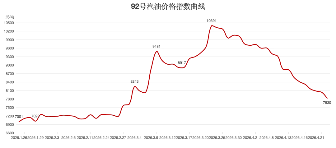 受国内成品油价格下调影响,今日天津及周边地炼汽柴油价格整体出现下跌的情况,部分单位继续加大汽柴油价格优惠力度,其中汽油下调幅度为50-250元/吨,柴油下调幅度为30-150元/吨,辖区最新成交价格区间:92#汽油7800-8050元/吨、0#柴油7140-7300元/吨。随着五一假期临近,物流及终端环节存在节前备货需求预期。