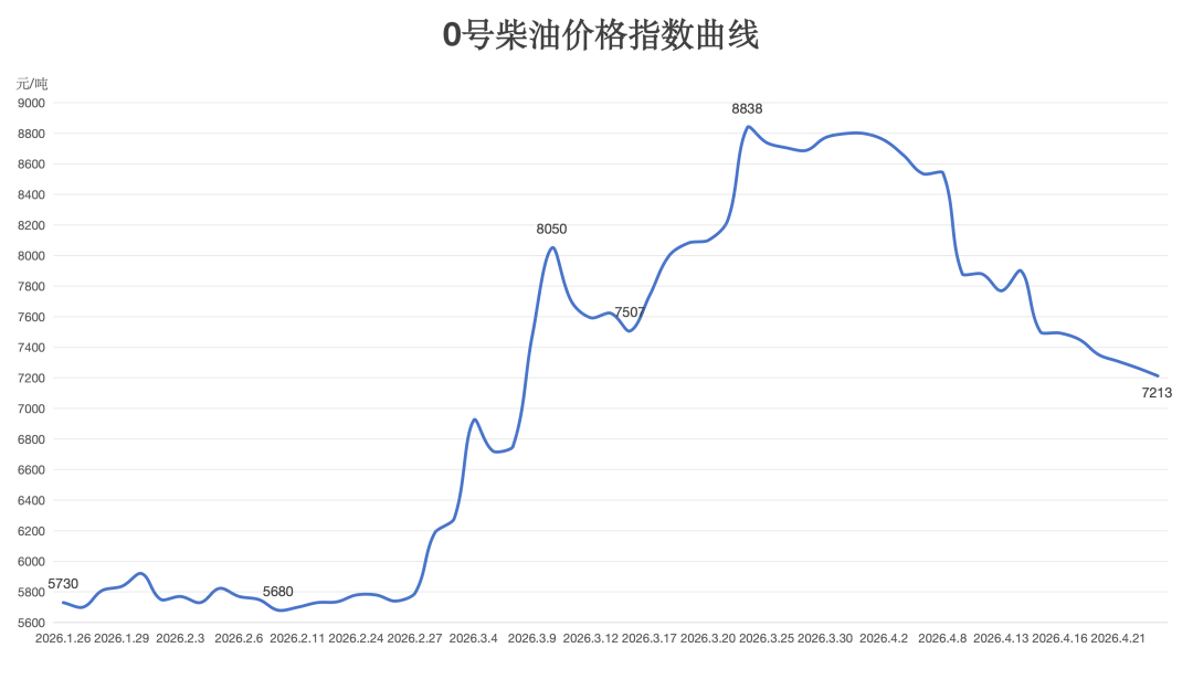 根据上海石油天然气交易中心中石油线上竞价交易每日成交价格情况,形成天津市场汽柴油线上交易价格指数,走势如下: