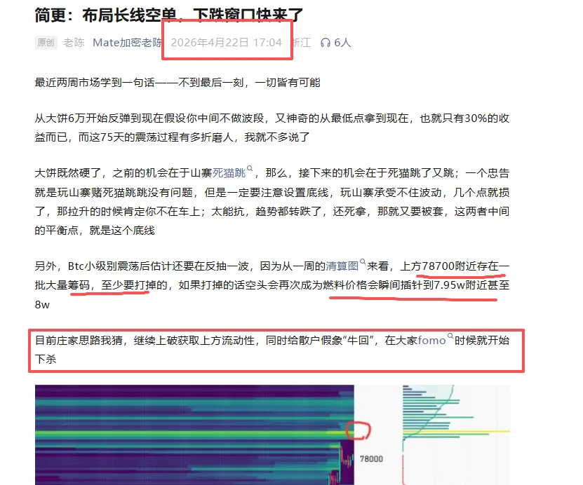 感谢昨天的行情,让我在7w9接到了第三笔关键位置的空单每一次的走势,都是主力画好的心里博弈图, 牛市和上涨中都是不断地诱空, 熊市和下跌中都是不断的诱多, 很少有例外的接下来,大饼走势可能会一步一个高点,回踩之后又一个高点目标8开头,可能8破不了,所以只能看庄家怎么操盘了最大程度上FOMO情绪调动,极致诱多而我操作目标只有一个,再往上继续分批接空单,目标5开头最后有想一起交流的,欢迎扫码下方二维码一起交易,在熊市中也能稳步前行,积累牛市启动资金!
