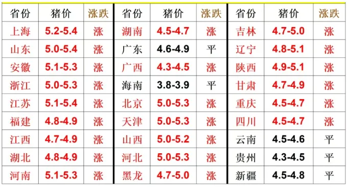 >2026年04月24日全国猪价行情表