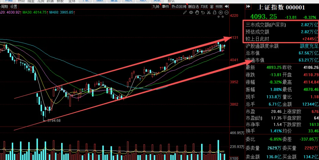 量能方面,今天放量到了2.8w亿,主要是科技内部多空博弈过于激烈,其它方向其实量能还是正常的。