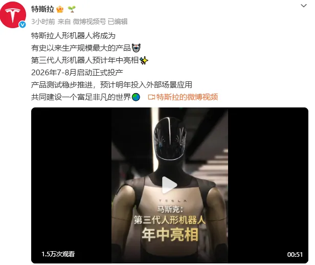 人形机器人方面,最近特斯拉催化的消息比较多,Optimus V3预计今年7、8月开始量产,如果实现,将推动行业从展示迈向经济实用。
