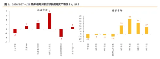 地缘冲突处于关键节点,但市场关注度大幅降低。全球市场风险偏好延续修复,美股、日股等已突破冲突前水平,资金也快速从极度超卖回到小幅超买区间。预计短期围绕地缘或仍有一定博弈,不过产业周期、财报季关注度更高,AI科技、新老能源等强盈利兑现和中长期逻辑的板块胜率更高,同时关注氦气、硫磺、尿素等短缺品种机会。中债本周开始建议久期逐步向中性回归,10Y国债逢高适度止盈,转向5Y左右政金债或二永,30Y国债不再追涨。美股胜率和赔率均有所弱化,建议稍作观望。我们对美债观点略偏正面,中短端性价比相对更优。