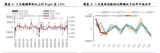 资金 4 月下旬能否延续宽松? 首先,摩擦因素主要是 4 月税期走款( 4 月 20 日之后的 2-3 日)、即将到来的资金跨月,但从 3 月跨季阶段资金利率仍然表现平稳来看,税期及跨月的压力并非主要矛盾。其次,央行操作方面,从当前央行持续“地量” 7 天逆回购投放、买断式逆回购逐步小幅回笼的动作来看,政策端或意在渐进式回收多余流动性,在市场杠杆率并不高的阶段,避免资金利率的大开大合。另外,从银行资负来看,资产端关注的仍然是信贷投放何时环比回暖、政府债发行节奏;负债端则关注若银行调降同业活期存款利率,则银行负债吸收能力可能会受到一定影响。综上,预计 4 月下旬资金利率可能较 4 月上中旬小幅提升,但仍在宽松水平, DR001 加权利率或向 1.25%附近回升。