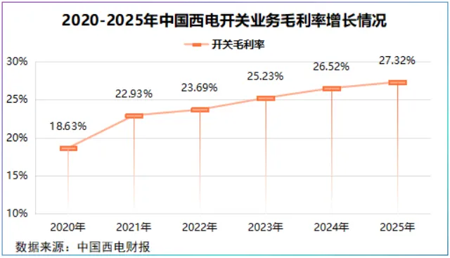 中国西电开关毛利率从2020年的18.63%一路攀升至2025年的27.32%,产品利润贡献比最高能达52.02%