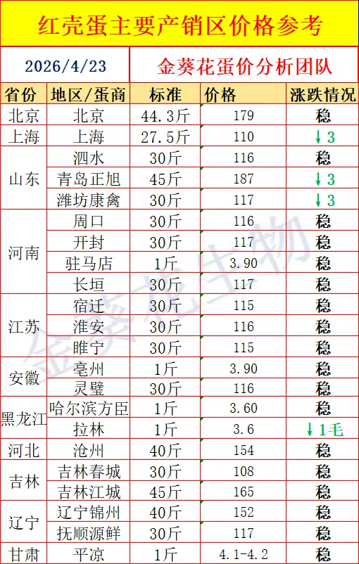 2 0 2 6年 4月 23日全国鸡蛋主流价格