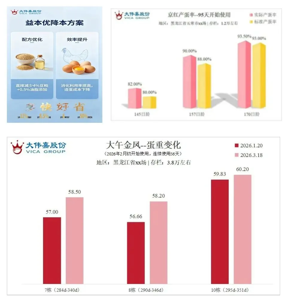 数据支撑: 在辽宁鞍山和黑龙江哈尔滨的实地案例中,使用XF63方案的鸡群,不仅采食量下降幅度小,适口性好,而且产蛋率全程保持稳定,甚至有所提升。
