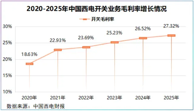 中国西电开关毛利率从2020年的18.63%一路攀升至2025年的27.32%,产品利润贡献比最高能达52.02%。