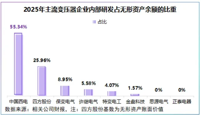 2025年,中国西电通过内部研发形成的无形资产占无形资产余额的比重高达55.34%,而特变电工、许继电气、保变电气均不到10%,思源电气更是为0。