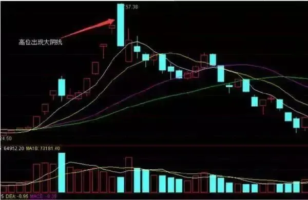 在高位遭到抛盘,收了根大阴线,虽然成交量不算大,但是当天的换手率达15%以上。这时投资者要果断卖出。第二天股价也大幅低开,后市也是一路下跌。