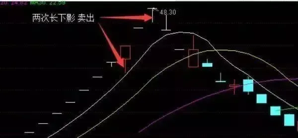 这种形态的股价一般连续拉升,非常强势,连续涨停板,在上涨的过程中,会出现过一次长下影线,拉着,股价会继续上涨,并且再一次出现长的下影线,就算当天尾盘是涨停的,也要果断卖出,免得因小失大。一个短线天才遵循的卖出原则,简单实用,高抛低吸。