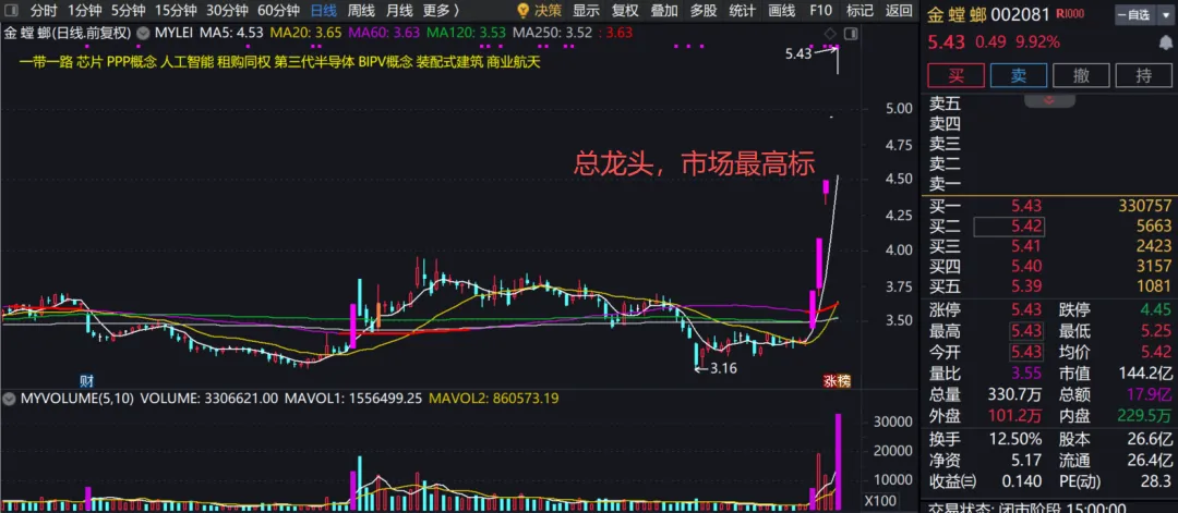 触发条件:中国航天日政策利好超预期 + 金螳螂继续晋级6连板